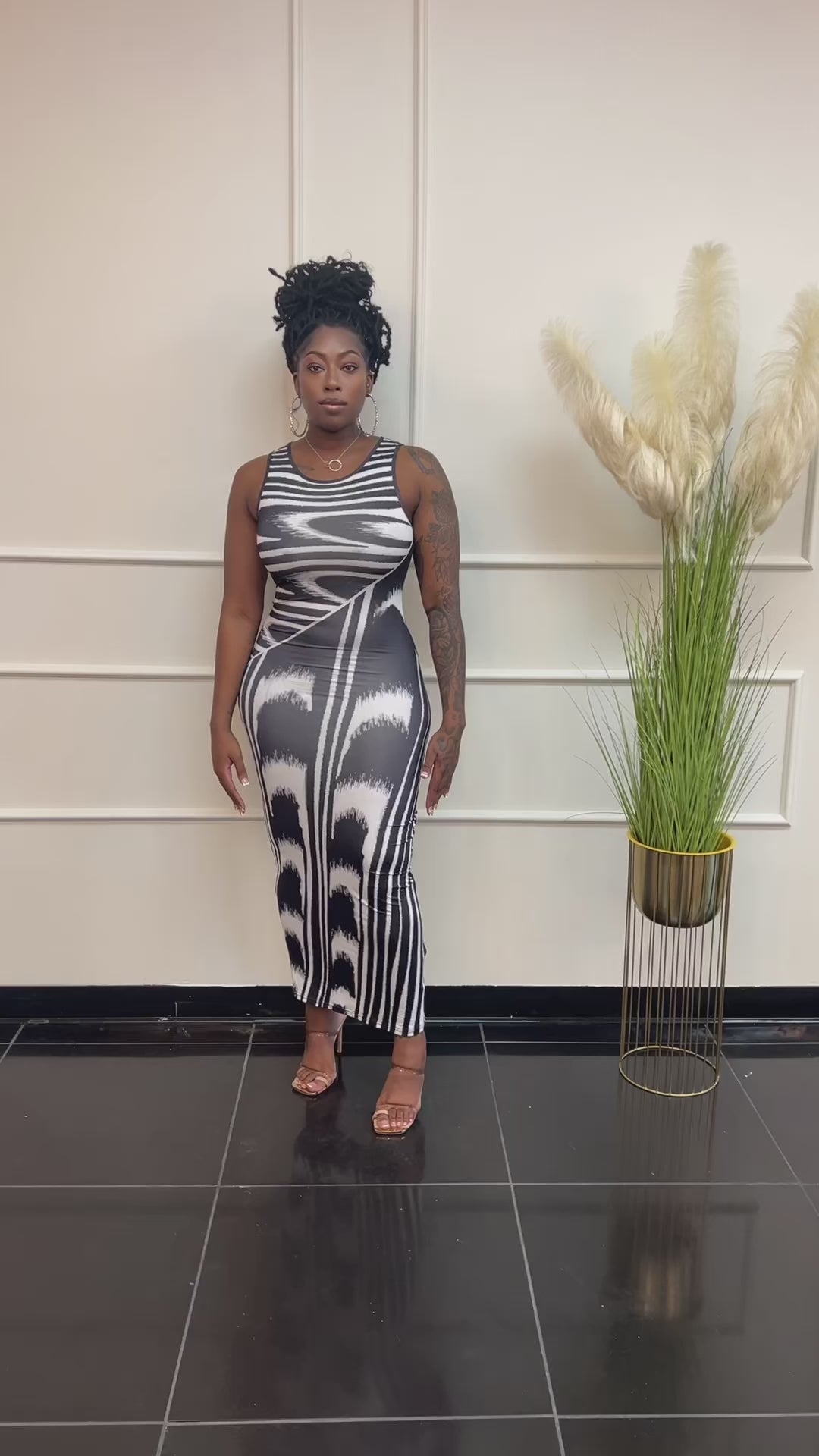 The Layla body con dress has a beautiful 2 tone pattern that the flows simultaneously from the front to the back. The material is super soft with 96% Polyester and 6% Spandex. The stretch is very good. Model wearing size Small Weighs 158 And is 5’5 in height. True to size.